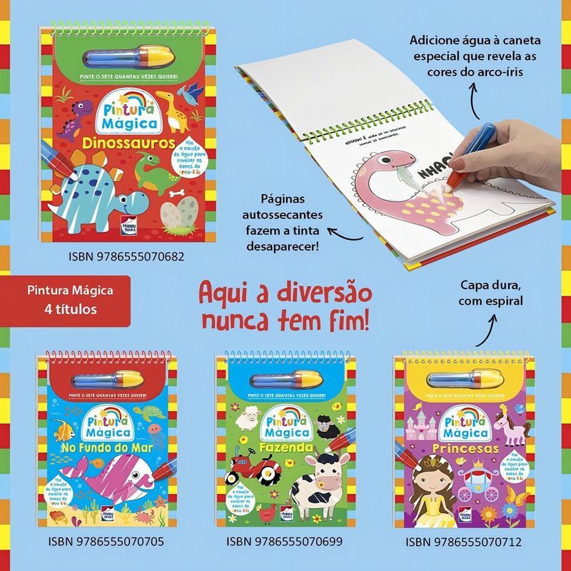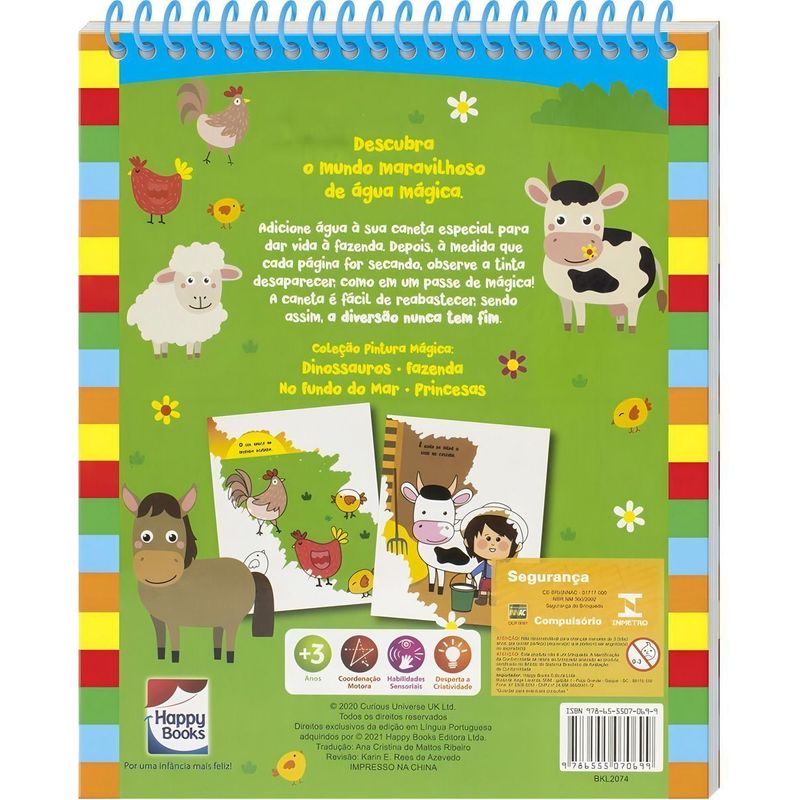 Descubra o mundo maravilhoso de água mágica. Adicione água à sua caneta especial para dar vida a fazenda. Depois, à medida que cada página for secando, observe a tinta desaparecer, como em um passe de mágica! A caneta é fácil de reabastecer, sendo assim, a diversão nunca tem fim.