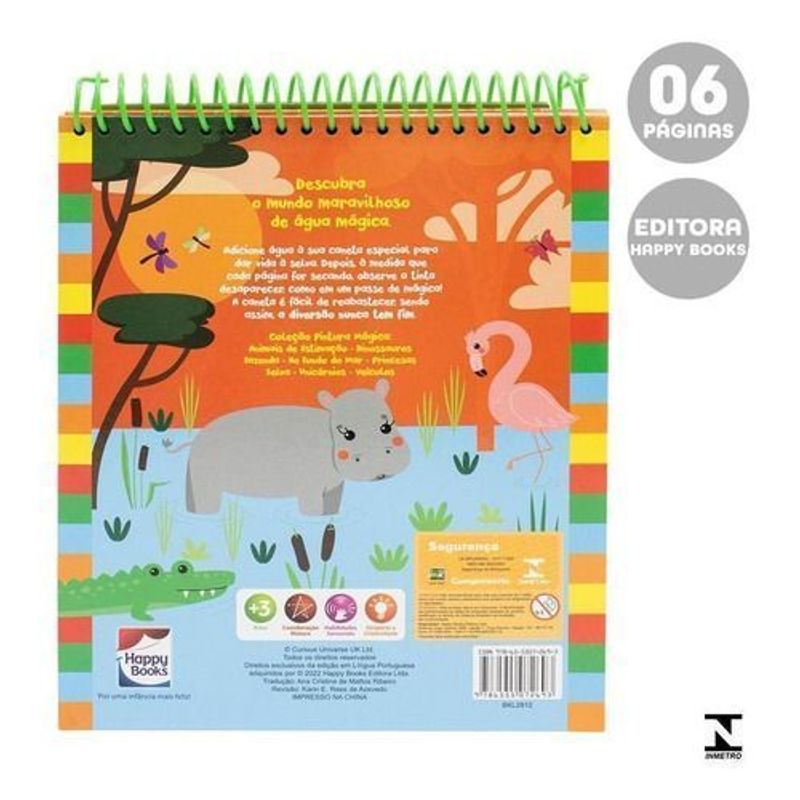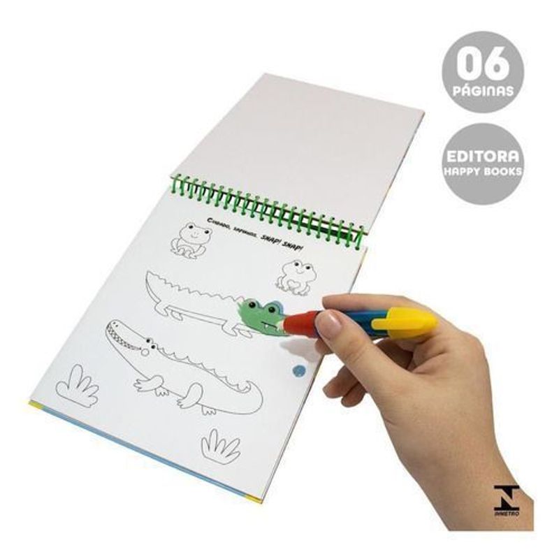 Descubra o mundo maravilhoso de água mágica. Adicione água à sua caneta especial para dar vida à selva. Depois, à medida que cada página for secando, observe a tinta desaparecer, como em um passe de mágica! A caneta é fácil de reabastecer, sendo assim, a diversão nunca tem fim.