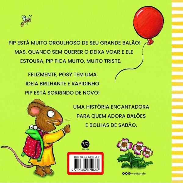 Pip está MUITO orgulhoso de seu grande balão! Mas, quando sem querer o deixa voar e ele estoura, Pip fica muito, muito triste. Felizmente, Posy tem uma ideia brilhante e rapidinho Pip está sorrindo de novo! Uma história encantadora para quem adora balões e bolhas de sabão.