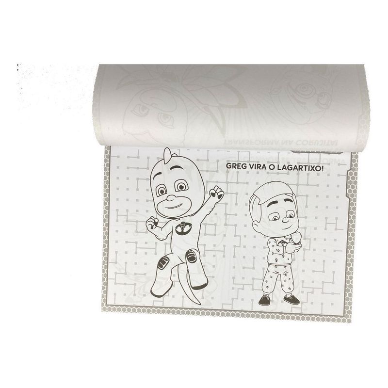 Pronto para mais uma aventura com os PJ Masks? Então venha colorir de montão esta prancheta lotada de desenhos irados para você se divertir de montão. E ainda vem 1500 adesivos para você colar onde quiser.
