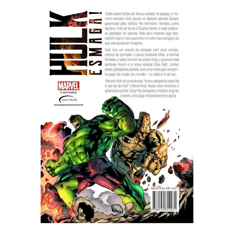 Traído pelos heróis da Terra e exilado no espaço, o homem-monstro Hulk pousa no distante planeta Sakaar, governado pelo tirânico Rei Vermelho. Vendido como escravo, Hulk se torna o Cicatriz Verde, o mais poderoso gladiador do planeta. Mas seus mestres logo descobrem que o novo guerreiro é muito mais perigoso do que eles poderiam imaginar. Hulk cria um vínculo de amizade com seus companheiros de combate: o astuto insetoide Miek, a horrível Ninhada, o sábio homem de pedra Korg, o guerreiro das sombras Hiroim e a nobre rebelde Elloe Kai. Juntos, esses gladiadores partirão para uma revolução sangrenta capaz de mudar seu mundo – ou destruí-lo de vez. “Planeta Hulk” foi considerado “leitura obrigatória para fãs e não fãs de Hulk” (Planet Vine). Neste novo romance, o aclamado escritor Greg Pak extrapola a história original, criando uma saga verdadeiramente épica.