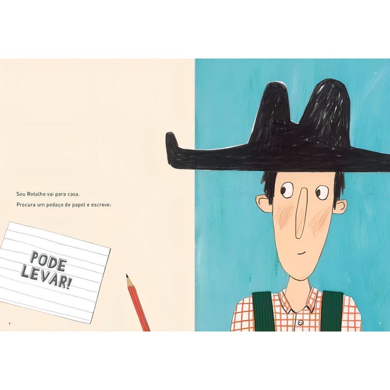 O simpático seu Retalho escreve em um pedaço de papel: pode levar! O pequeno bilhete causa a maior confusão! Pois com equívocos se chega longe. Bem mais longe do que se pode imaginar. Isso é ótimo, pois o mundo é redondo e bonito como uma maçã. Uma história para sentir, rir e que – sem esquecer de pagar – a gente pode levar!