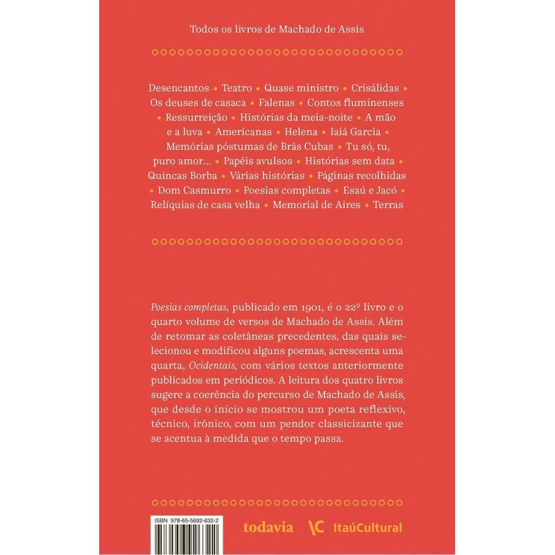 É o 22º livro e o quarto volume de versos de Machado de Assis. Além de retomar as coletâneas precedentes, das quais selecionou e modificou alguns poemas, acrescenta uma quarta, Ocidentais, com vários textos anteriormente publicados em periódicos. A leitura dos quatro livros sugere a coerência do percurso de Machado de Assis, que desde o início se mostrou um poeta reflexivo, técnico, irônico, com um pendor classicizante.