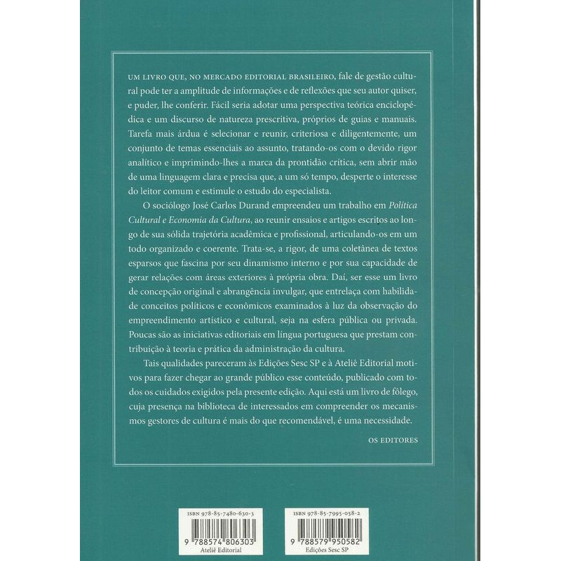 Com olhar de sociólogo, José Carlos Durand discute a presença do Estado no domínio cultural, o profissionalismo na gestão, o patrocínio privado no financiamento de projetos, a crítica de arte e o papel estratégico das premiações, a necessidade de estatísticas e a importância da economia da cultura como disciplina que custa a se implantar no país. A experiência estrangeira aparece como contraponto nesta antologia que procura contribuir à construção da memória das políticas culturais no Brasil, reunindo textos escritos entre 1995 e 2010.