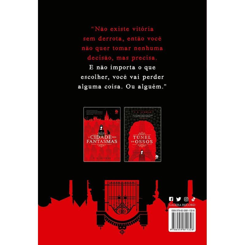 Da autora best-seller V. E. Schwab, Ponte das Almas é o terceiro volume da trilogia de mistério A cidade dos fantasmas. Embarque na aventura final de Cassidy Black rumo a mística Nova Orleans, a cidade mais mal-assombrada do mundo! Onde quer que os fantasmas estejam, Cassidy Blake parece ir atrás… Ou seria o contrário?Depois de conhecer os fantasmas de Edimburgo e os poltergeists de Paris, Cass acha que está pronta para qualquer tipo de situação sobrenatural.Mas nada poderia prepará-la para Nova Orleans. Uma cidade de passeios fantasmagóricos, tumbas, funerais embalados a jazz, dezenas de cemitérios e todos os tipos de magia. Uma perdição quando se fala de lendas locais terríveis. E esses nem estão perto de serem os maiores problemas de Cass.Enquanto seus pais filmam o terceiro episódio de seu programa de TV sobre as cidades mais mal-assombradas do mundo, ela precisará lidar com nada menos que um emissário da própria Morte. O trabalho dele é simples: levar aqueles que já desafiaram a morte para o lugar além do Véu. Pessoas como a própria Cassidy, que adquiriu a habilidade paranormal de ver e se comunicar com fantasmas após um terrível acidente quase tirar a sua vida. Sempre acompanhada do melhor amigo, o fantasma Jacob, Cassidy descobrirá que para derrotar o emissário, precisará abrir mão de algo – ou alguém. “Explora o significado da amizade ao mesmo tempo que apresenta novos lugares e suas histórias, permitindo que os leitores vivam uma aventura assustadoramente emocionante.” – School Library Journal“Mais uma leitura intensa em uma série repleta de emoções e calafrios” – Kirkus Reviews