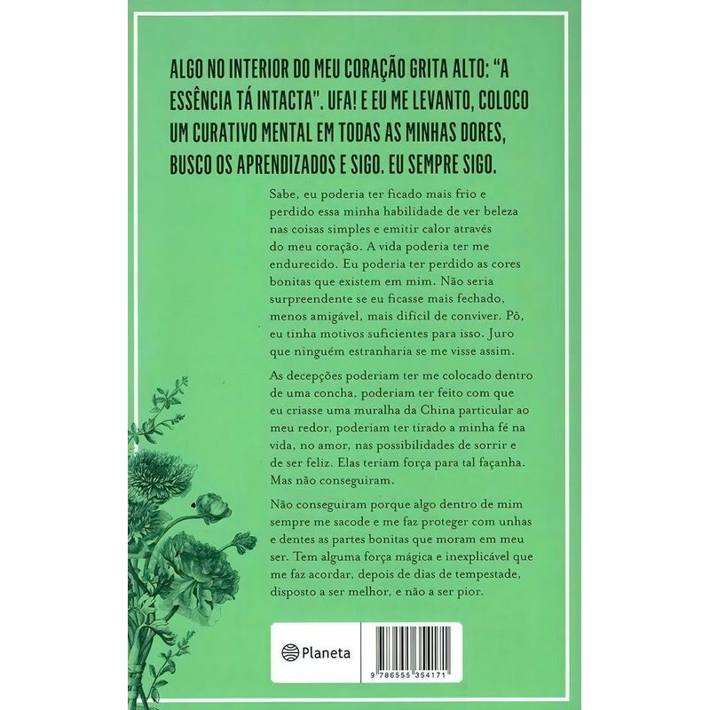 Sabe, eu poderia ter ficado mais frio e perdido essa minha habilidade de ver beleza nas coisas simples e emitir calor através do meu coração. A vida poderia ter me endurecido. Eu poderia ter perdido as cores bonitas que existem em mim. Não seria surpreendente se eu ficasse mais fechado, menos amigável, mais difícil de conviver. Pô, eu tinha motivos suficientes para isso. Juro que ninguém estranharia se me visse assim. As decepções poderiam ter me colocado dentro de uma concha, poderiam ter feito com que eu criasse uma muralha da China, ao meu redor, poderiam ter tirado a minha fé na vida, no amor, nas possibilidades de sorrir e de ser feliz. Elas teriam força para tal façanha. Mas não conseguiram. Não conseguiram porque algo dentro de mim sempre me sacode e me faz proteger com unhas e dentes as partes bonitas que moram em meu ser. Tem alguma força mágica e inexplicável que me faz acordar, depois de dias de tempestade, disposto a ser melhor, e não a ser pior.