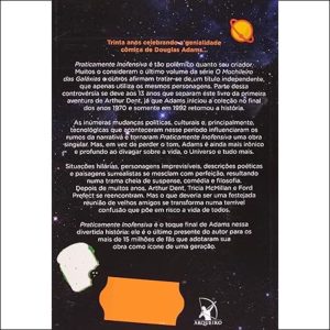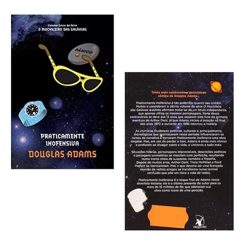 Até hoje inédito no Brasil, “Praticamente Inofensiva” é tão polêmico quanto seu criador. Muitos o consideram o último volume da série “O Mochileiro das Galáxias” e outros afirmam tratar-se de um título independente, que apenas utiliza os mesmos personagens. Parte dessa controvérsia se deve aos 13 anos que separam este livro da primeira aventura de Arthur Dent, já que Douglas Adams iniciou a coleção no final dos anos 1970 e somente em 1992 retomou a história. As inúmeras mudanças políticas, culturais e, principalmente, tecnológicas que aconteceram nesse período influenciaram os rumos da narrativa e tornaram “Praticamente inofensiva” uma obra singular. Mas, em vez de perder o tom, Adams parece ainda mais irônico e profundo ao divagar sobre a vida, o Universo e tudo mais.