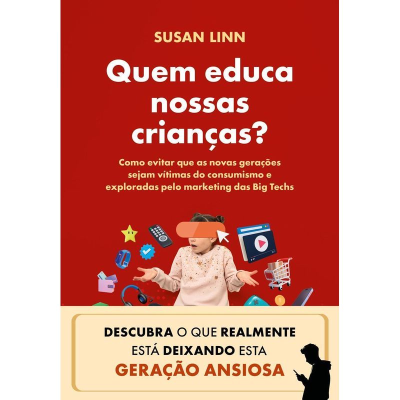 Quem educa nossas crianças? é uma obra provocativa que mergulha no complexo mundo da influência da mídia na infância. A autora, Susan Linn, é uma psicóloga clínica renomada e examina como a publicidade, os programas de TV e os produtos infantis moldam a visão da criança sobre si mesma e sobre o mundo ao seu redor. A autora questiona quem está realmente educando nossas crianças, destacando como os interesses comerciais frequentemente superam o bem-estar infantil. Com uma mistura de pesquisa abrangente e exemplos vívidos, Linn desafia os pais, educadores e criadores de políticas a repensarem seu papel na formação da próxima geração e a defenderem um ambiente mais saudável e menos comercial para as crianças crescerem. Este livro é um chamado à ação urgente para proteger a inocência e a imaginação das crianças em um mundo saturado de mensagens consumistas. “Envolvente e perspicaz, este livro é rico em detalhes que pintam um retrato completo das relações contemporâneas entre crianças e empresas.” The New York Times Book Review “Uma acusação veemente às empresas de tecnologia que ganham muito dinheiro explorando as mentes dos nossos filhos.” New York Post “Um guia sobre como mudar de rumo, tanto individualmente quanto como sociedade, por uma ativista experiente. Leitura obrigatória!” Library Journal (revisão com estrela) “Uma análise impressionante de como o marketing, a tecnologia e o capitalismo de consumo impactam o bem-estar das crianças. Esta é uma leitura obrigatória para pais, mães e educadores.” Publishers Weekly (revisão com estrela) “Uma leitura obrigatória para qualquer pai e mãe.” Kirkus Reviews (crítica com estrela) “A pesquisadora e ativista pioneira Susan Linn mostra que temos sido passivos à medida que nossos filhos estão sendo moldados naquilo que as empresas tecnológicas querem que fossem. Este livro é um chamado às armas e um texto fundamental para um diálogo necessário.” Sherry Turkle, professora do MIT e escritora “Uma resposta inestimável para os pais num momento impossível – e para aqueles de nós cujos filhos já são adultos, um grande guia para resistir às plataformas e aos aplicativos que estão restringindo a vida da nossa sociedade de formas cada vez mais dolorosas.” Bill McKibben, escritor “Este é um livro sobre uma divergência perigosa – entre as estratégias de maximização de lucros das empresas que comercializam brinquedos e aplicativos de redes sociais para crianças, por um lado, e as necessidades reais das crianças, por outro. Com base numa coleção impressionante de estudos e histórias, Susan Linn ilumina os danos daquilo que ela apropriadamente chama de ‘aquisição corporativa da infância’ e mostra-nos o que podemos fazer para proteger nossas crianças.” Alfie Kohn, autor de Paternidade incondicional “Toda criança precisa de uma defensora como Susan Linn; todos os pais, de uma amiga sábia como ela; todos os políticos e líderes empresariais, de uma desafiante ousada como ela. E todo leitor precisa deste livro – uma análise apaixonada e extremamente prática de um dos grandes dilemas da nossa época.” James Carroll, escritor