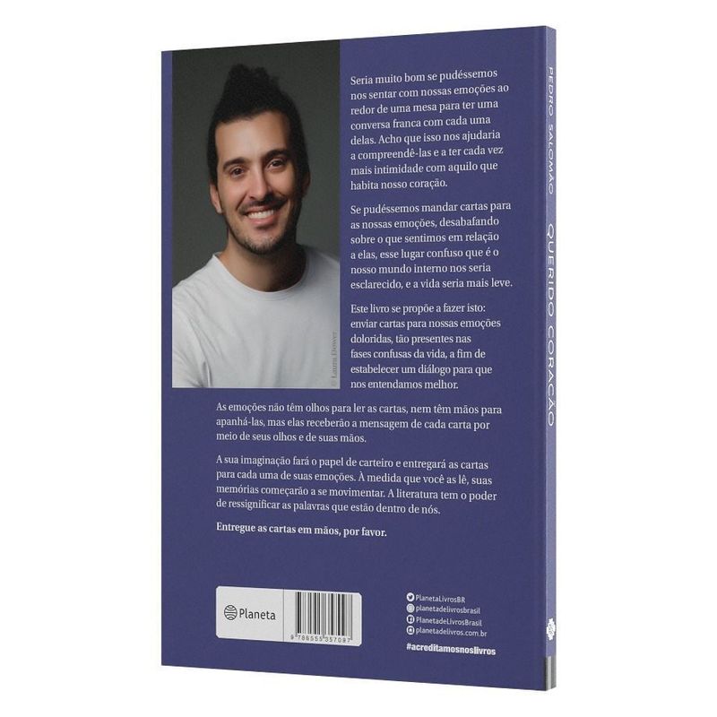 Poeta com mais de 50 mil exemplares vendidos no Brasil Seria muito bom se pudéssemos nos sentar com nossas emoções ao redor de uma mesa para termos uma conversa franca com cada uma delas. Acho que isso nos ajudaria a compreendê-las e a termos cada vez mais intimidade com aquilo que habita nosso coração. Se pudéssemos mandar cartas para as nossas emoções, desabafando sobre o que sentimos em relação a elas, esse lugar confuso que é o nosso mundo interno nos seria esclarecido, e a vida seria mais leve. Este livro se propõe a fazer isso: enviar cartas para nossas emoções doloridas, tão presentes nas fases confusas da vida, a fim de estabelecer um diálogo que possibilite que nos entendamos melhor. As emoções não têm olhos para ler as cartas, nem têm mãos para apanhá-las, mas elas receberão a mensagem de cada carta por meio de seus olhos e suas mãos. A sua imaginação fará o papel de carteiro e entregará as cartas para cada uma de suas emoções. À medida que você as lê, suas memórias começarão a se mexer de lugar: esse é o poder que a literatura tem de ressignificar as palavras que estão dentro de nós. Entregue as cartas em mãos, por favor.