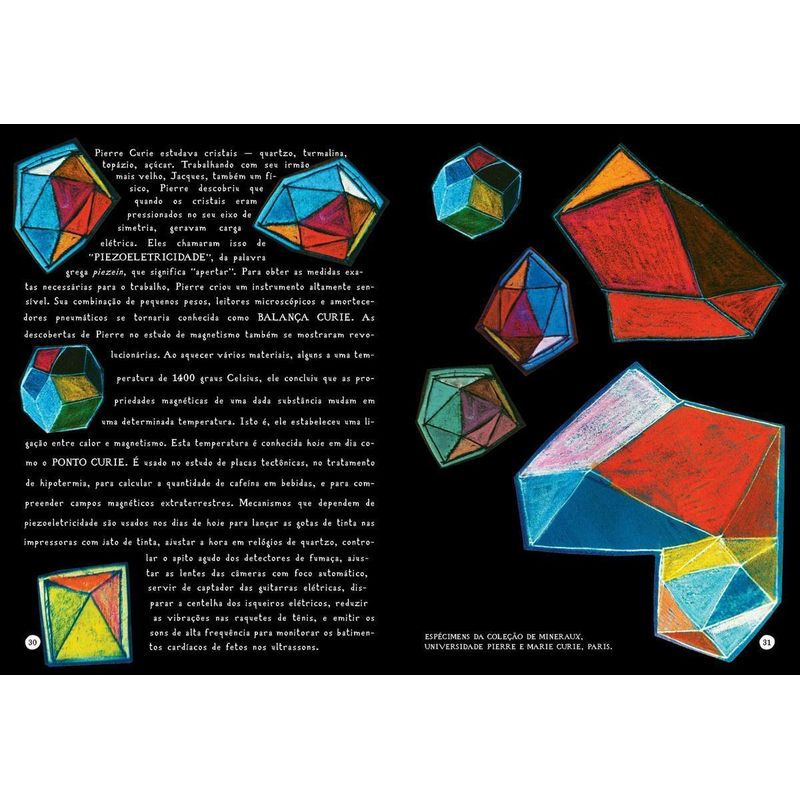 Livro que deu origem a Radioactive, filme da Netflix estrelado por Rosamund Pike e dirigido por Marjane Satrapi, autora da graphic novel Persépolis, Radioativos é uma belíssima biografia ilustrada que conta a trajetória espetacular da física Marie Curie e de seu marido Pierre. Radioativos conta a história de Marie Curie, a física polonesa radicada na França famosa por seu trabalho com a radioatividade — e a primeira pessoa a ganhar o Nobel duas vezes. O livro mostra sua infância, sua história de amor e colaboração científica com o marido Pierre, e a maneira como suas descobertas, que incluíam o rádio e o polônio, os envenenaram em câmera lenta. Para as ilustrações, a autora usou um processo chamado impressão cianotipada, em que um desenho, através de um processo químico que envolve luz solar, se transforma numa espécie de negativo brilhante do original. E a partir de entrevistas com cientistas, engenheiros, sobreviventes de bombas atômicas e a neta de Marie e Pierre Curie, Redniss recriou com fidelidade a atmosfera e os embates científicos da Paris fin de siècle. Com um texto extraordinário e ilustrações deslumbrantes, Radioativos é uma narrativa vibrante, uma história de amor cheia de emoção e, sobretudo, uma obra de arte perfeita. “De repente, as cores florescem com uma força intensa, a história se contrai em um par de figuras alongadas fechadas num abraço, depois se expande novamente numa explosão de palavras. Neste livro totalmente original sobre paixão e descoberta, Lauren Redniss inventou uma forma única de contar uma história.” — Nicole Krauss “Pura genialidade imaginativa.” — Malcolm Gladwell