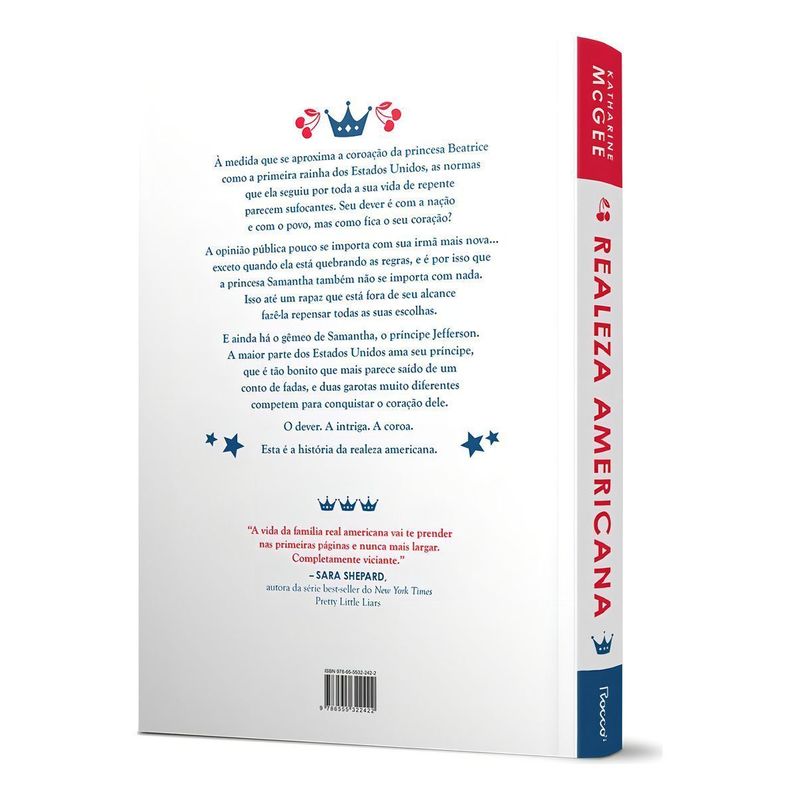 Uma coroa prestes a mudar de mãos. Duas garotas disputando o coração de um príncipe. Esta é a história da realeza americana. Quando os Estados Unidos venceram a Guerra de Independência contra a Inglaterra, o povo ofereceu uma coroa ao general George Washington. Dois séculos e meio depois, a Casa de Washington permanece no trono. Mas eles não são como as outras famílias reais. Como uma personificação dos Estados Unidos, os Washington são lindos, incrivelmente famosos e o coração da corte mais gloriosa do mundo. Mas, por trás dos salões de baile reluzentes, vestidos elegantes e figuras públicas aparentemente perfeitas, escondem-se romances proibidos e segredos escandalosos. A geração mais jovem da nobreza precisa navegar de forma eficiente (embora nem sempre discreta) por fofocas, dramas e a vigilância constante da mídia, do povo e de suas próprias famílias. A autora best-seller do New York Times Katharine McGee imagina uma versão alternativa do mundo moderno, na qual a era brilhante das monarquias ainda não se desvaneceu – e o amor ainda é poderoso o suficiente para mudar o curso da história. “A vida da família real americana vai te prender nas primeiras páginas e nunca mais largar. Completamente viciante.” – SARA SHEPARD, autora da série best-seller do New York Times Pretty Little Liars.