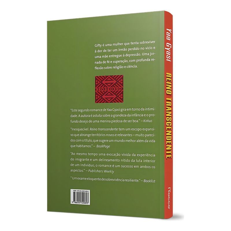 “Gifty é uma mulher que tenta sobreviver à dor de ter um irmão perdido no vício e uma mãe entregue à depressão. Uma jornada de fé e superação, com profunda reflexão sobre religião e ciência. Filha de imigrantes ganenses, Gifty é estudante de doutorado em neurociência na Escola de Medicina da Universidade de Stanford. Quando ela ainda era criança, seu único irmão, Nana, estrela ascendente do basquete no ensino médio, tornou-se viciado em opioides após uma lesão esportiva. O vício lhe custou a vida, e à mãe, uma profunda depressão. Crescida na pobreza e com pai ausente, abalada pelo sofrimento familiar e com sua fé esmaecida, Gifty deposita na ciência suas expectativas de descoberta da cura emocional, bem como a obtenção de credibilidade junto ao povo da cidade em que mora no Alabama. Belo olhar sobre a experiência do imigrante, o peso das expectativas, racismo, pobreza, depressão e vício, Reino transcendente é um romance sobre fé, ciência, religião e amor, um retrato comovente de uma família, suas emoções e o trauma ao qual sobrevive.”