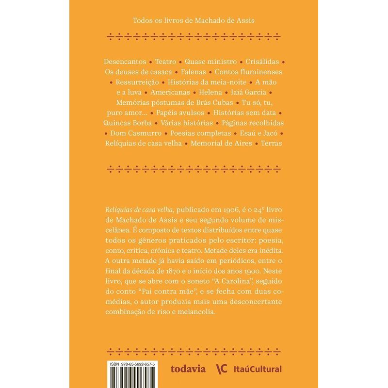 É o 24º livro de Machado de Assis e seu segundo volume de miscelânea. É composto de textos distribuídos entre quase todos os gêneros praticados pelo escritor: poesia, conto, crítica, crônica e teatro. Metade deles era inédita. A outra metade já havia saído em periódicos, entre o final da década de 1870 e o início dos anos 1900. Nesse livro, que se abre com o soneto “A Carolina”, seguido do conto “Pai contra mãe”, e se fecha com duas comédias, o autor produzia mais uma desconcertante combinação de riso e melancolia.