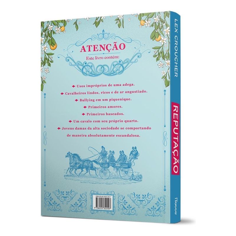 É uma verdade universalmente conhecida que garotas só querem se divertir. Atenção! Este livro contém: – Usos impróprios de uma adega. – Cavalheiros lindos, ricos e de ar angustiado. – Bullying em um piquenique. – Primeiros amores. – Primeiros baseados. – Um cavalo com seu próprio quarto. – Jovens damas da alta sociedade se comportando de maneira absolutamente escandalosa. Uma mistura de Bridgerton com Meninas malvadas, Reputação é um romance de época capaz de arrancar gargalhadas. Passado em um período em que a reputação de uma dama era tudo, esta comédia romântica fala sobre amizades, primeiros amores, consentimento, hierarquia social e pertencimento, tudo através dos olhos de uma heroína inesquecível. Ignorada pelos pais, a inteligente e ingênua Georgiana Ellers vai passar o verão com seus enfadonhos tios no interior da Inglaterra. Em uma festa particularmente entediante, ela conhece a enigmática Frances Campbell, uma integrante da alta sociedade que leva o tipo de vida com o qual ela jamais sonhou. Para sua surpresa, Georgiana é acolhida pelos aristocráticos amigos de Frances, um grupo rebelde e indecoroso que a distrai da monotonia. De repente, sua vida se torna uma sucessão de fins de semana sem acompanhantes, mas cheios de bebedeiras, substâncias ilícitas e duvidosas, gastos frívolos e cavalheiros misteriosos — e um em especial que chama sua atenção: Thomas Hawksley, que tende a cruzar com Georgiana em seus momentos mais embaraçosos e não se impressiona com a rebeldia de seus amigos. Sob o olhar sarcástico da protagonista, esta comédia romântica é um delicioso mergulho na era da Regência britânica, com direito a muitas festas luxuosas, homens bonitos montados em cavalos, mulheres em corseletes e pérolas, e um senso de humor que Jane Austen aprovaria. *Acompanha cartela de ímãs.