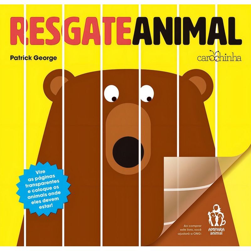 “Neste livro interativo, você se torna um herói dos animais. Um elefante está em um circo, uma tartaruga está presa em uma de pesca…Vire as páginas transparentes e ajude a resgatá-los! É uma maneira divertida, simples e gentil de introduzir a importância do bem-estar dos animais. Não há palavras neste livro, então você pode escolher as que melhor combinam com o seu jeito de ser herói. Ao comprar este livro, você ajudará a ONG Ampara Animal.”