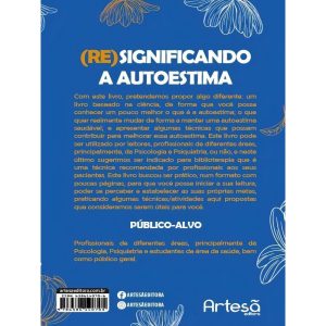 Com este livro, pretendemos propor algo diferente: um livro baseado na ciência, de forma que você possa conhecer um pouco melhor o que é a autoestima; o que quer realmente mudar de forma a manter uma autoestima saudável; e apresentar algumas técnicas que possam contribuir para melhorar essa autoestima. Este livro pode ser utilizado por leitores, profissionais de diferentes áreas, principalmente, da Psicologia e Psiquiatria, ou não, e neste último sugerimos ser indicado para biblioterapia que é uma técnica recomendada por profissionais aos seus pacientes. Este livro buscou ser prático, num formato com poucas páginas, para que você possa iniciar a sua leitura, poder se perceber e estabelecer as suas próprias metas, praticando algumas técnicas/atividades aqui propostas que consideramos serem úteis para você.