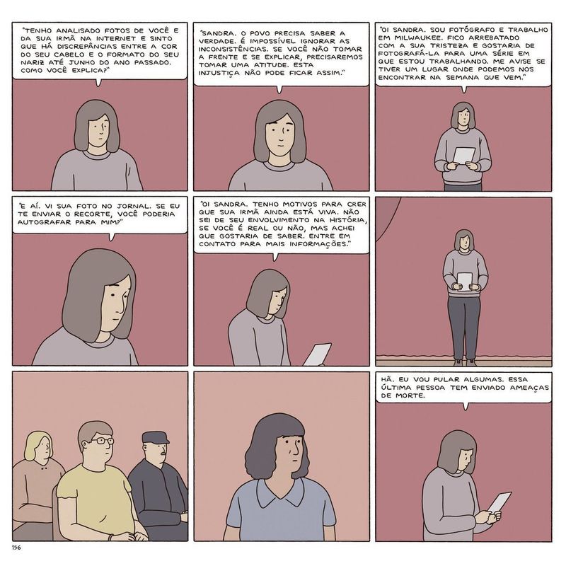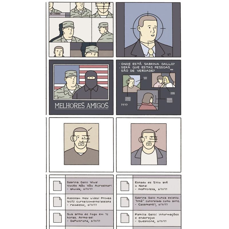 Sabrina entrou para a história como a primeira história em quadrinhos indicada ao Man Booker Prize, considerado o prêmio mais importante da literatura de língua inglesa. O livro narra o misterioso desaparecimento da jovem Sabrina e acompanha os reflexos desse evento na vida das pessoas ao seu redor: a angústia de Teddy, o namorado, que passa os dias na cama imaginando o paradeiro da garota desaparecida, a tensão de seu amigo Calvin, um oficial da força aérea que se vê subitamente envolvido na trama e o desespero da irmã Sandra, em busca de notícias, recusando-se a aceitar o pior. Em meio ao sofrimento da família, os fóruns alimentam a internet com teorias conspiratórias sobre o caso e disseminam fake news que ganham repercussão cada vez maior, borrando os limites entre realidade e ficção. Com traços calculados e cores sóbrias, Nick Drnaso cria uma história dramática sobre os afetos na era das mídias sociais, a espetacularização da violência e o declínio da verdade.