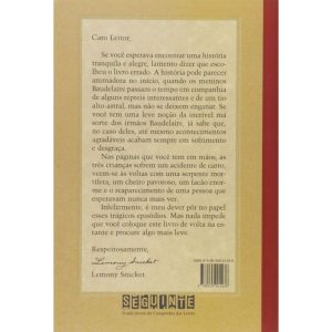 Lemony Snicket é um autor que não pode ser acusado de falta de franqueza. Sabe que nem todo mundo suporta as tristezas que ele conta e por isso – para que depois ninguém reclame – faz questão de avisar: “Se você esperava encontrar uma história tranquila e alegre, lamento dizer que escolheu o livro errado. A história pode parecer animadora no início, quando os meninos Baudelaire passam o tempo em companhia de alguns répteis interessantes e de um tio alto-astral, mas não se deixem enganar…”. Os Baudelaire têm mesmo uma incrível má sorte, mas pode-se afirmar que a vida deles seria bem mais fácil se não tivessem de enfrentar o tempo todo as armadilhas de seu arquiinimigo: o conde Olaf, um homem revoltante, gosmento e pérfido.