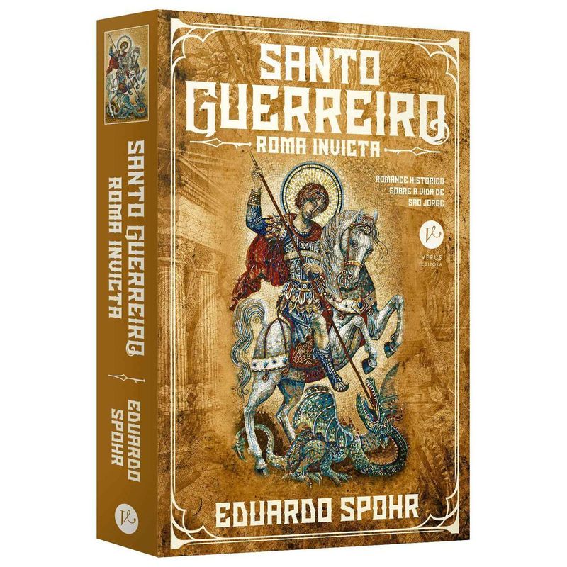 Santo guerreiro: Roma invicta é o novo livro de Eduardo Spohr, autor dos best-sellers A batalha do Apocalipse e a série Filhos do Éden. O livro, que marca sua estreia no gênero do romance histórico, conta a versão mais fidedigna já escrita sobre a vida de Gergios, o soldado romano eternizado e admirado em todo o planeta como São Jorge. No fim do terceiro século, o Império Romano estava à beira do colapso. Invasões bárbaras, confrontos religiosos e insurreições militares ameaçavam a soberania dos césares. No Leste, a poderosa rainha Zenóbia reuniu uma tropa de guerreiros montados e assumiu o controle da Síria. Caráusio, o almirante da frota romana no Canal da Mancha, ocupou as províncias do Oeste e se autoproclamou imperador da Britânia. Em meio à desordem e ao caos, Laios Graco, alto oficial da cavalaria, é morto e suas terras, roubadas. Seu filho, o jovem Georgios, foge para a capital com o objetivo de se apresentar ao imperador Diocleciano, antigo companheiro de seu pai, na esperança de ser aceito no exército, tornar-se soldado, recuperar suas posses e vingar a família. Santo Guerreiro conta a versão mais fidedigna da vida de São Jorge já escrita. Com base em documentos históricos e vestígios arqueológicos, o autor nos transporta de volta à Antiguidade tardia, a um tempo em que o aço, o amor e a intriga governavam o destino dos homens — e, por conseguinte, os rumos da história. Um dos santos mais populares do mundo, São Jorge é adorado por católicos, ortodoxos, anglicanos e devotos das religiões de matriz africana. Na iconografia, ele é representado por um cavaleiro brilhante, usando armadura completa, armado de lança e enfrentando um dragão. Essa imagem, entretanto, é meramente alegórica. De acordo com a tradição, Jorge — ou Georgios, seu nome grego — não foi um guerreiro medieval, mas um soldado romano, que nasceu no século III e morreu executado após repudiar os deuses pagãos. Embora não haja registros que confirmem a existência do santo, há uma infinidade de fontes históricas que descrevem o mundo em que ele teria vivido. Diocleciano, que governou o Império Romano entre 284 e 305 d.C., promoveu a última grande perseguição aos cristãos, ceifando perto de três mil vidas. Durante sua administração, a sociedade mediterrânea sofreu com a invasão dos persas, o assédio dos germânicos no extremo norte e uma série de revoltas internas. Diocleciano também transferiu a capital de Roma para a Nicomédia, na Anatólia (atual Turquia), e criou uma guarda particular, uma tropa de elite da qual, supostamente, Georgios fez parte. Santo Guerreiro: Roma Invicta é o primeiro livro de uma trilogia que se propõe a contar a biografia de São Jorge pelo prisma histórico. Trata-se de uma obra de ficção, que não pretende desafiar doutrinas ou dogmas, mas lançar luz sobre esse personagem que, seja real ou simbólico, é tão querido e admirado por milhares de fiéis em todo o planeta. Roma Invicta será sucedido por Ventos do Norte e O Império do Leste.