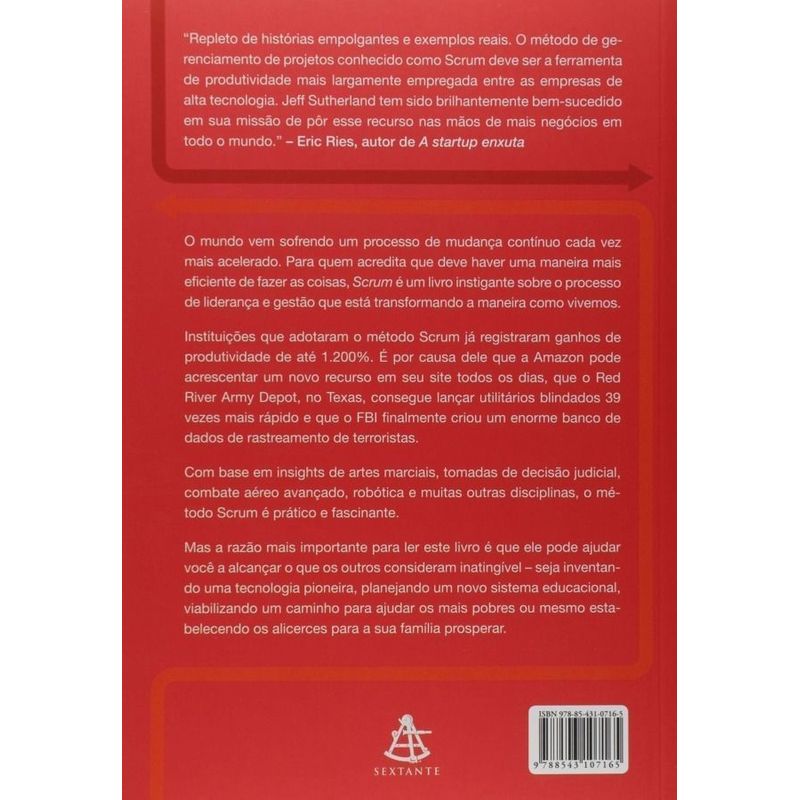 O mundo vem sofrendo um processo de mudança contínuo cada vez mais acelerado. Para quem acredita que deve haver uma maneira mais eficiente de fazer as coisas, Scrum é um livro instigante sobre o processo de liderança e gestão que está transformando a maneira como vivemos. Instituições que adotaram o método Scrum já registraram ganhos de produtividade de até 1.200%. É por causa dele que a Amazon pode acrescentar um novo recurso em seu todos os dias, que o Red River Army Depot, no Texas, consegue lançar utilitários blindados 39 vezes mais rápido e que o FBI finalmente criou um enorme banco de dados de rastreamento de terroristas. Com base em insights de artes marciais, tomadas de decisão judicial, combate aéreo avançado, robótica e muitas outras disciplinas, o método Scrum é prático e fascinante. Mas a razão mais importante para ler este livro é que ele pode ajudar você a alcançar o que os outros consideram inatingível – seja inventando uma tecnologia pioneira, planejando um novo sistema educacional, viabilizando um caminho para ajudar os mais pobres ou mesmo estabelecendo os alicerces para a sua família prosperar.