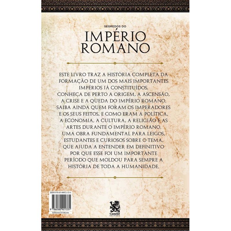 Saiba ainda quem foram os imperadores e os seus feitos, e como eram a política, a economia, a cultura, a religião e as artes durante o Império Romano. Uma obra fundamental para leigos, estudantes e curiosos sobre o tema, que ajuda a entender em definitivo por que esse foi um importante período que moldou para sempre a história de toda a humanidade.