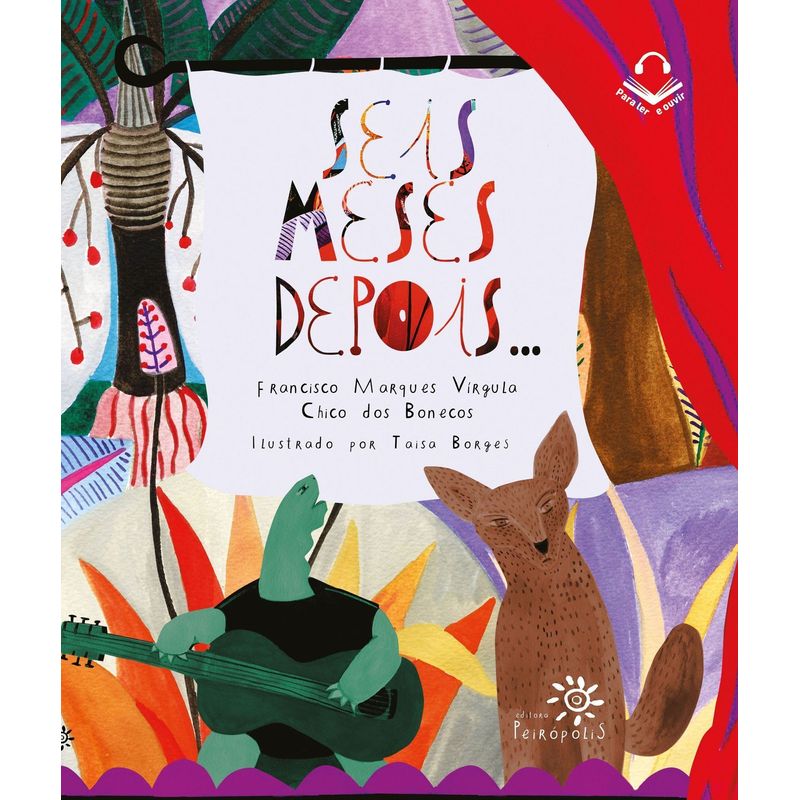 A história Seis Meses Depois… foi contada durante trinta janeiros, sendo escrita no ar, com a voz e os gestos de um narrador muito especial, Francisco Marques Vírgula Chico dos Bonecos. De tanto contar e espalhar a história por aí, escolhendo palavras e pausas, recolhendo as participações dos ouvintes, reunindo as provocações do momento, amarrando os imprevistos aos seus improvisos, foi nascendo, toda sapituca, uma ideia genial: e se a história fosse para o papel? Com enredo inspirado em conto de Sílvio Romero, um dos mais importantes folcloristas brasileiros, e ilustrada por Taisa Borges, a história começa bem no meio da Floresta da Brejaúva, onde havia uma árvore repleta de uma fruta desconhecida, cujo nome abracadabrante deveria ser pronunciado antes de ser comida. Mas, como descobrir o nome da deliciosa fruta? Conversando com o leitor, e convidando-o a ler e assistir, a ouvir e a ver imagens, Francisco Marques Vírgula Chico dos Bonecos não apenas conta ao seu modo uma história centenária de nosso repertório universal, mas faz uma ode ao belo e poderoso encontro que acontece entre aquele que narra e aqueles que escutam. Além de ler, pode-se também ouvir a história contada pelo Chico, que sempre nos encanta em texto e em voz.