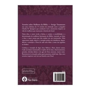 Coletânea de 15 sermões escritos por Charles H. Spurgeon sobre Mulheres do Antigo Testamento que marcaram a história de Israel. O autor apresenta exemplos práticos de obediência, dependência e contrição dessas mulheres a Deus, bem como revela a beleza, o caráter, a sensibilidade e o doce e suave aroma que o testemunho delas exalam e de como isso agradou o Senhor.