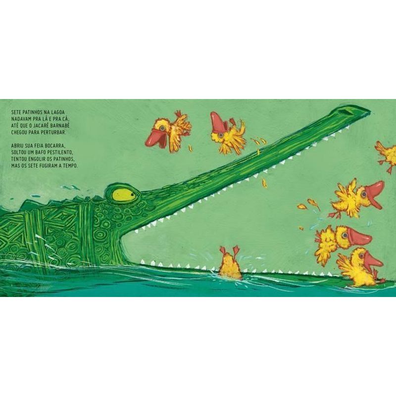 Esta é a história de sete patinhos e de um terrível jacaré. Ou seriam seis patinhos? O fato é que a lagoa nunca mais foi a mesma depois que aqueles patinhos se viram frente a frente com o Barnabé. Mergulhe nessa aventura poética e descubra tudo o que pode acontecer quando algumas inocentes aves resolvem nadar nas águas em que vive Barnabé, o terrível jacaré.