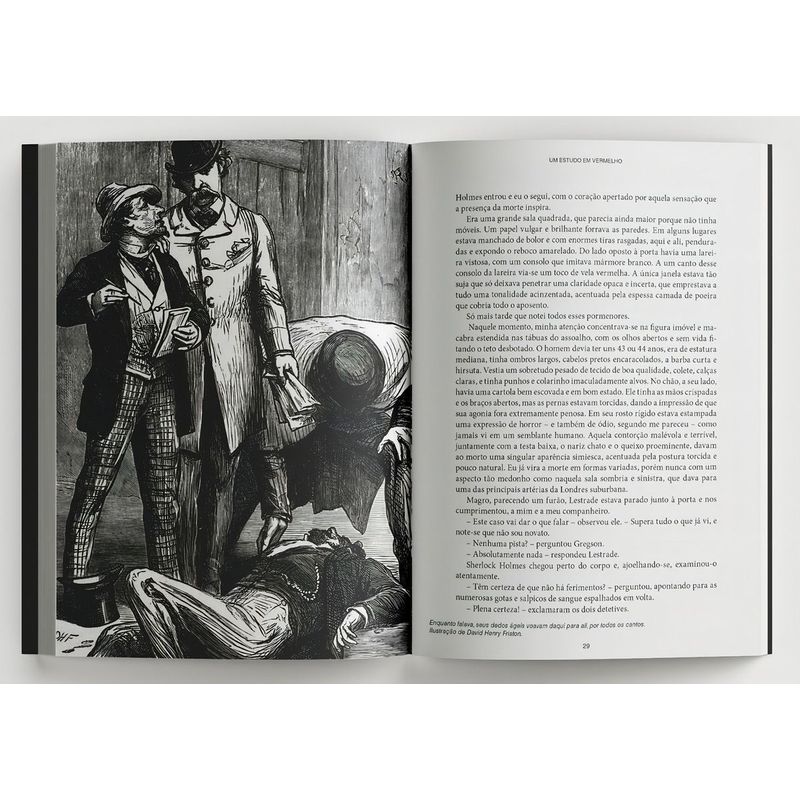 Esta é a primeira das fascinantes e misteriosas histórias de Sherlock Holmes, o detetive de ficção mais famoso de todos os tempos. Publicado em 1887, Um Estudo em Vermelho, de Arthur Conan Doyle, não mostra apenas o início da duradoura parceria entre Holmes e Watson, mas também uma instigante narrativa que destaca as incríveis habilidades dedutivas de Holmes, despertando a curiosidade do leitor e conduzindo o caso a um desfecho inacreditável.