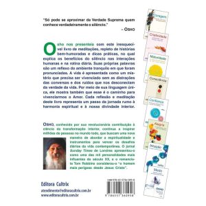 Este é um livro de meditações muito especial, com diversas dicas práticas e histórias bem-humoradas, no qual o mestre Osho explica os benefícios do silêncio nas interações humanas e na rotina diária. Na obra a vida é apresentada como um mistério que precisa ser vivenciado sem as distrações das conversas e dos ruídos que nos desconectam da verdade da vida. Osho mostra também que esse é o caminho para vivenciarmos o Amor. Cada reflexão e meditação deste livro representa um passo da jornada rumo à harmonia espiritual e à nossa divindade interior.