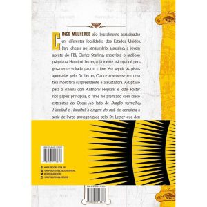 Nova edicao do livro que inspirou o classico do cinema vencedor de cinco estatuetas do Oscar, incluindo a de Melhor Filme e Melhor Roteiro Adaptado. Cinco mulheres sao brutalmente assassinadas em diferentes localidades dos Estados Unidos. Para chegar ao sanguinario assassino, a jovem agente do FBI, Clarice Starling, interroga o ardiloso psiquiatra Hannibal Lecter, cuja mente psicopata e perigosamente voltada para o crime. Ao seguir as pistas apontadas pelo Dr. Lecter, Clarice envolve-se em uma teia mortifera surpreendente e assustadora. Adaptado para o cinema com Anthony Hopkins e Jodie Foster nos papeis principais, o filme foi premiado com cinco estatuetas do Oscar. Ao lado de Dragao vermelho, Hannibal e Hannibal: a origem do mal, ele completa a serie de livros protagonizada pelo Dr. Lecter que deu origem a serie de televisao Hannibal.