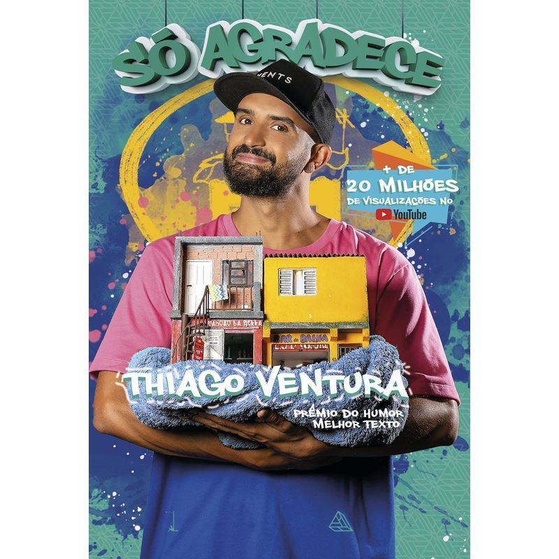 Ae^ Quebrada. “Na humildade memo, na humildade memo, na humildade memo…” Du nada a novidade baixou do Taboa~o da Serra, o livro So´ Agradece de Thiago Ventura, o Zika da Come´dia: o cara com bom humor que juntou Stand-Up e Quebrada! O pobre, o feio, o perife´rico… sempre foram os “escadas”, o alvo da piada, mo´ come´dia, e isso na~o tem grac¸a nenhuma. Thiago Ventura, com sua imensa cabec¸a, uma usina de humor apelidada Big Big, iniciou uma revoluc¸a~o pelo riso. A risada e´ o escudo dos fracos. CURRICULUM VITAE – DO PAI Thiago Ventura e´ um feno^meno de pu´blico e cri´tica por onde passa: dos maiores festivais de Come´dia no Brasil a`s turne^s pelo mundo com escalas no Japão, Estados Unidos, Portugal, Reino Unido, Holanda e França. Integrante dos grupos: 4 Amigos, Come´dia ao Vivo, A Culpa e´ do Cabral e Jokes. Com especiais na Netflix e um canal no YouTube com mais de 5 milhões de inscritos, seus vi´deos foram assistidos em torno de 500 milho~es de vezes, o especial So´ Agradece bateu a marca de 20 milho~es de visualizac¸o~es e no momento em que voce^ esta´ lendo, esses nu´meros ja´ ficaram pra tra´s. Uma boa leitura e So´ Agradece!
