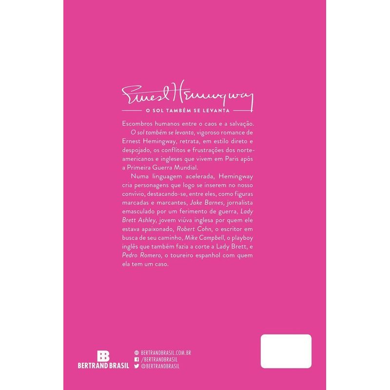 O sol também se levanta é uma obra vigorosa que retrata, em estilo direto e despojado, os conflitos e frustrações dos norte-americanos e ingleses que vivem em Paris após a Primeira Guerra Mundial. Numa linguagem acelerada, Hemingway cria personagens que logo se inserem no convívio do leitor, destacando-se, entre eles, como figuras marcadas e marcantes, Jake Barnes, jornalista emasculado por um ferimento de guerra, Lady Brett Ashley, jovem viúva inglesa por quem ele estava apaixonado, Robert Cohn, o escritor em busca de seu caminho, Mike Campbell, o playboy inglês que também fazia a corte a Lady Brett, e Pedro Romero, o toureiro espanhol com quem ela tem um caso. Para esta obra Hemingway elaborou tipos humanos complexos, representando assim uma geração contaminada pela ironia e pelo vazio diante da vida, com seus valores morais destruídos pela guerra e irremediavelmente perdidos.