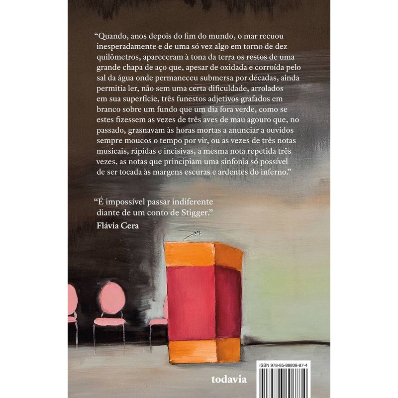 Este grupo de ficções de Veronica Stigger — contos, causos, epifanias, poemas e textos de inspiração teatral — oferece, com sua variedade de forma e ritmos, um conjunto absolutamente irresistível, aterrador e risível de nossas fragilidades (do corpo e da mente). A história do aluno de colégio invejado por levar tupperware preto; o dia em que nevou numa cidade dos trópicos; o longo conto-poema sobre sangue, menstruação e morte.