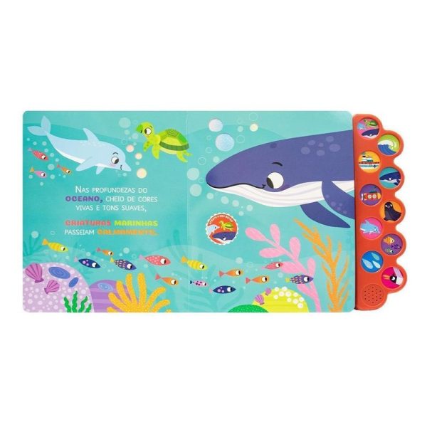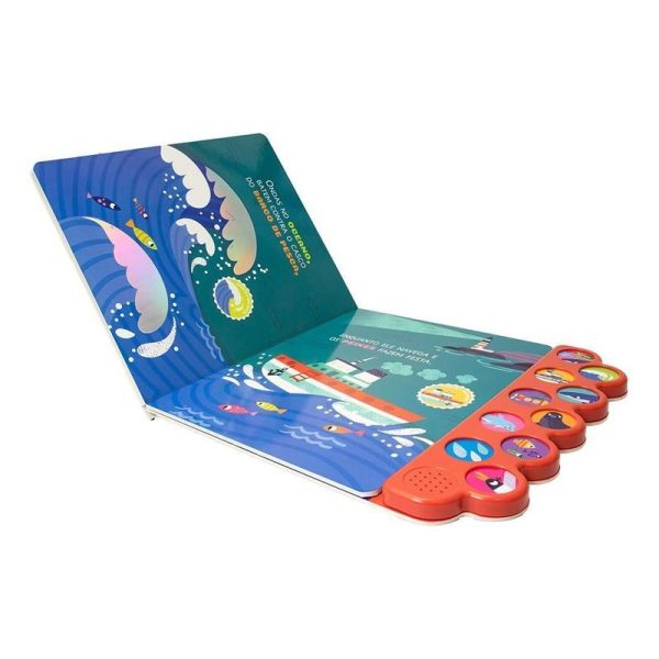 Explore o oceano neste livro interativo com painel sonoro! Sinta as texturas, aperte os botões e ouça os sons cativantes do mar!