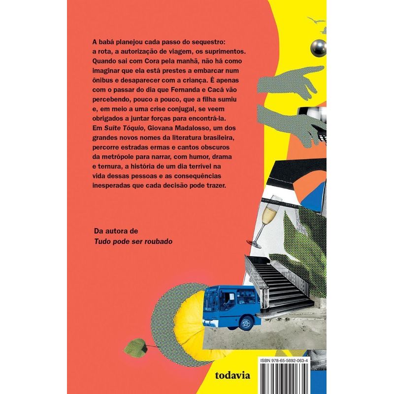 É uma manhã qualquer quando Maju atravessa a praça ao lado de Cora. Puxando a garota pelo braço, ela passa sorrateiramente pelo exército branco, sobe a avenida, pega um ônibus e desaparece. Exército branco foi o nome que Fernanda, mãe de Cora, deu às babás que todos os dias lotam a praça daquele bairro de classe alta com as crianças de seus patrões. Nos últimos tempos, no entanto, a babá e a filha parecem tão anônimas para Fernanda quanto as outras. Afundada numa crise pessoal, ela demora a perceber que Maju e Cora sumiram sem dar notícias. Ao longo do dia, tudo vai desabando. De um lado, Fernanda lida com o fracasso de seu casamento. Apaixonada por uma diretora com quem trabalhou num projeto cinematográfico, ela deixa a relação com o marido definhar. Quer distância de Cacá, mas conforme os primeiros telefonemas aflitos para a babá vão se transformando em desespero, se vê de novo afundando naquele universo. Enquanto isso, Maju vai até a rodoviária e desaparece num ônibus com Cora. Em meio a motéis imundos e paradas insólitas, põe em ação seu plano, que imediatamente sai do controle. Neste romance pé na estrada, Giovana Madalosso coloca para girar, com força e fluidez, a vida dessas personagens que parecem eternamente em busca — de ternura, nção, sexo, qualquer coisa que possa movê-las de onde estão. O sequestro de Cora abala as engrenagens do passado e do presente, do desejo e do ressentimento, e a procura desesperada que se segue é também um doloroso acerto de contas com a vida e as expectativas que construímos. Suíte Tóquio é um romance vertiginoso e tragicômico que fala daquele lugar tênue entre o que as pessoas querem ser e o que de fato são.