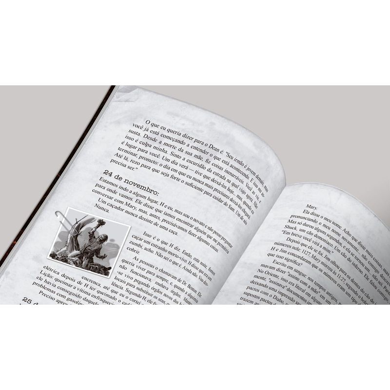 Sam e Dean conhecem todos os segredos que John Winchester guardou em seu diário. Agora você vai saber também.No dia 2 de novembro de 1983, Sam e Dean Winchester perderam a mãe, morta por uma força demoníaca sobrenatural. Após a tragédia, o pai deles, John, decidiu aprender tudo que podia sobre as criaturas malignas que vivem nos cantos sombrios e nas estradas mais longínquas dos Estados Unidos… John Winchester reuniu em seu diário lendas, folclores e superstições sobre inúmeros inimigos do outro mundo, mas também relatou suas próprias experiências e angústias — na caçada à criatura que matou sua esposa, enquanto criava, sozinho, seus dois filhos.O diário de John Winchester traz para os fãs de Supernatural tudo aquilo que sempre sonharam: os rituais de exorcismo que Sam e Dean aprenderam a usar; a história de Samuel Colt; a primeira caçada de Dean; o time de futebol infantil de Sam… E tudo sobre a frenética caçada aos seres sobrenaturais.Este diário reproduz fielmente todas as anotações, conselhos e estratégias que John colecionou e que servem como valiosas armas na saga dos Winchester