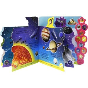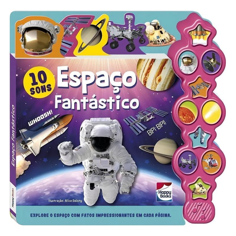 WHOOSH! BIP! CRACKLE! Aprenda tudo sobre o espaço com este livro barulhento e cheio de fatos. Com dez sons legais e guias moldadas fáceis de usar, este livro é a introdução perfeita para conhecer o espaço sideral.