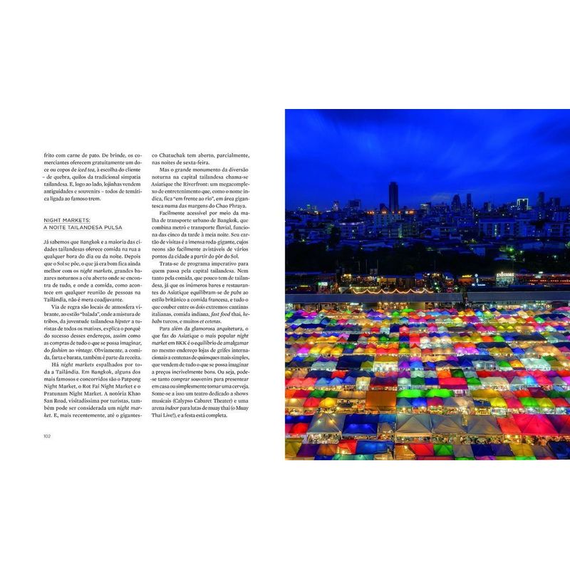 Ao longo de mais de 200 páginas reunidas em relato inédito no Brasil, Tailândia, Cores & Sabores conduz o leitor em busca do DNA thai, presente tanto na alta espiritualidade da simpática nação asiática quanto, em igual ou maior proporção, em seu monumental ativo turístico: sua irresistível comida – Graal que atrai boa parte dos milhões de turistas que anualmente visitam o país. Em texto envolvente, despojado e altamente informativo, o autor parte da capital Bangkok para percorrer o país de Norte a Sul em busca da essência da culinária tailandesa em suas origens e diferenças regionais, passando por mercados, feiras, restaurantes, bares, excentricidades, chefs e cozinheiros, sem esquecer as receitas clássicas como o Pad thai, Som tam e muitas outras que a consagraram mundialmente. Tailândia, Cores & Sabores é leitura saborosa, irresistível, com aroma de curry e sabor de Nam prick – tente ler sem salivar.