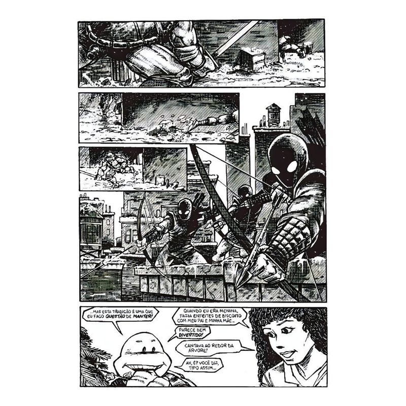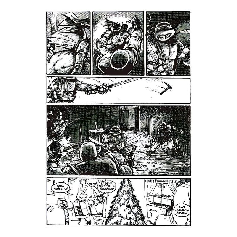 O segundo volume da coleção que compila na íntegra as histórias clássicas das Tartarugas Ninja! Leonardo, Donatello, Michelangelo, Rafael e Mestre Splinter estão de volta ao Brasil em seus quadrinhos originais em preto e branco, que deram origem a uma das maiores franquias da cultura pop, com filmes, desenhos animados, games, brinquedos e uma variedade incontável de outros produtos. Foi AQUI que tudo isso começou! Em meados dos anos 1980, os amigos artistas Kevin Eastman e Peter Laird, inspirados por seus ídolos Jack Kirby, Frank Miller e George Lucas, fundaram o Mirage Studios para produzir quadrinhos independentes e, juntos, lançaram as Tartarugas Ninja, uma inusitada criação que combinava artes marciais com elementos de HQs de super-heróis e filmes de ação e sci-fi! Logo após a primeira edição, as quatro tartarugas se tornaram um fenômeno nas comic shops dos EUA. Com o sucesso, o que estava programado pra ser uma única revista virou uma das séries mais divertidas dos quadrinhos, que bateu em vendas grandes títulos da Marvel e da DC, como Os Vingadores e a Liga da Justiça, e entrou para a história como a revista independente de maior sucesso até então, superada anos depois apenas por Spawn. A Coleção Clássica da editora Pipoca & Nanquim, de seis volumes em capa dura e miolo em papel offset, é baseada na Ultimate Collection da editora norte-americana IDW, e vai compilar no formato original todas as histórias escritas e desenhadas pelos criadores dos personagens, sempre acompanhadas de seções de comentários dos autores e páginas de esboços. Uma coleção para fã nenhum botar defeito.