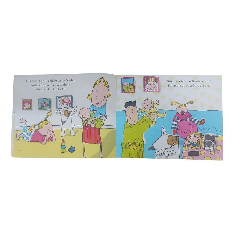 Quando se é filho único, você é o centro das atenções. Pais, tios e avós dão vários presentes e mimos. Mas, quando um novo irmãozinho chega, a atenção começa a ser dividida. Até mesmo um simples balançar de pernas do bebê se torna algo incrível. Em Tem gente nova no pedaço, Kes Gray mostra de maneira divertida a mudança na vida de uma menina quando Susana, sua nova irmãzinha, chega em casa e ganha todas as atenções da família. Do mesmo autor de Vou ganhar um irmãozinho.