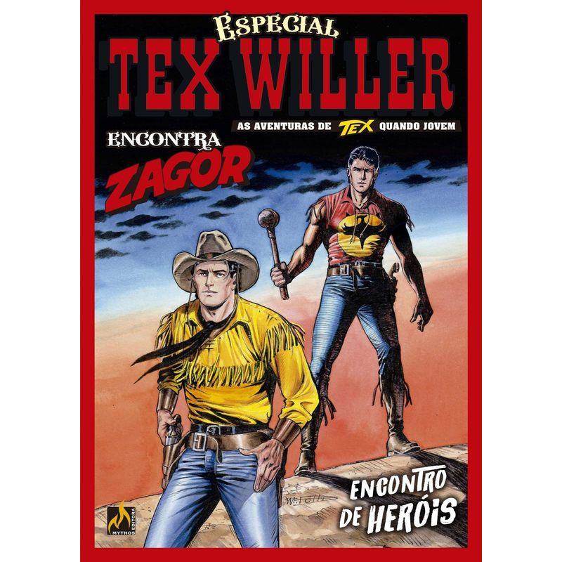Encontro de heróis No coração da comancheria da região selvagem de Texas Hills, está em curso uma guerrilha entre os comanches dos chefes Peta Nocona e Buffalo Hump e os Texas Rangers liderados por Rip Ford. Quando a esposa de Peta Nocona, mãe do jovem Quanah Parker, é raptada pelos texanos, o ranger renegado Adam Crane pede ajuda a Zagor, seu irmão de sangue, que havia ido ao Texas para vingar um amigo. Mais uma vez tomando partido dos índios, que correm o risco de perder suas terras, Za-gor-te-nay se opõe ao curso inevitável da História. Porém, ao enfrentar por equívoco um jovem ranger que, na verdade, revela ser um fora da lei em fuga, Zagor ganha um novo e inesperado aliado. Assim, talvez nem tudo esteja perdido para os comanches se, ao lado do Espírito da Machadinha, agora também lutar Tex Willer!