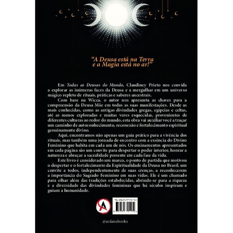 Em Todas as Deusas do Mundo, Claudiney Prieto nos convida a explorar as inúmeras faces da Deusa e a mergulhar em um universo mágico repleto de rituais, práticas e saberes ancestrais. Com base na Wicca, o autor nos apresenta as chaves para a compreensão da Deusa Mãe em todas as suas manifestações. Desde as mais conhecidas, como as antigas divindades gregas, egípcias e celtas, até as menos exploradas e muitas vezes esquecidas, provenientes de diferentes culturas ao redor do mundo, esta obra vai auxiliar você a traçar um caminho de autoconhecimento, reconexão e fortalecimento espiritual genuinamente divino. Aqui, encontramos não apenas um guia prático para a vivência dos rituais, mas também uma jornada de encontro com a essência do Divino Feminino que habita em cada um de nós. Os ensinamentos apresentados em cada página são um convite para despertar o poder interior, honrar a natureza e abraçar a sacralidade presente em cada fase da vida. Este livro é considerado um marco, o ponto de partida que motivou o despertar e o fortalecimento da Espiritualidade da Deusa no Brasil, um convite a todos, independentemente de suas crenças, a reconhecerem a importância do Sagrado Feminino em suas vidas. Ele é um chamado para olhar além das tradições estabelecidas, abrindo-se para a riqueza e a diversidade das divindades femininas que há séculos inspiram e guiam a humanidade.