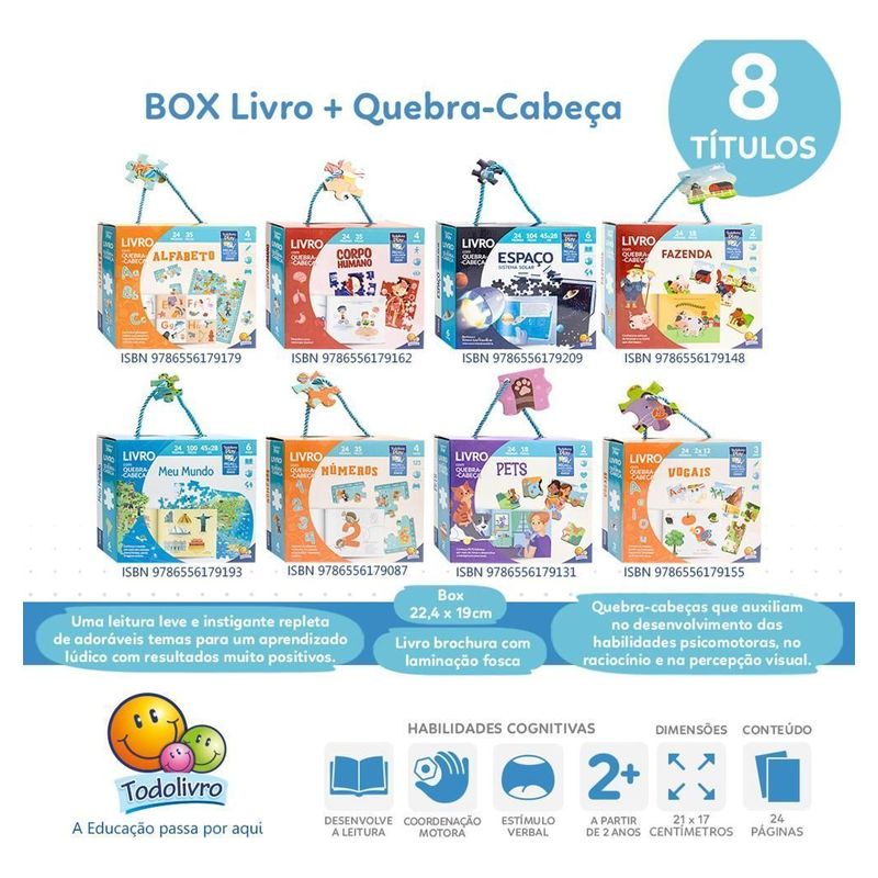 Um box lúdico que tem por finalidade ampliar o repertório matemático e levar a criança ao maravilhoso mundo dos números. Nele, há um livro totalmente interativo com atividades sobre o tema e um quebra-cabeça cujas peças são táteis para se identificar, nomear, sentir o movimento de cada número e, assim, memorizar a forma de escrevê-los, bem como sequenciá-los e quantificá-los. Enfim, um material de apoio riquíssimo à alfabetização fonética, que estimulará as habilidades cognitivas, psicomotoras e a percepção visual pela observação e associação.