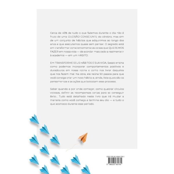 Cerca de 45% de tudo o que fazemos durante o dia não é fruto de uma DECISÃO CONSCIENTE do cérebro, mas sim de um conjunto de hábitos que adquirimos ao longo dos anos e que executamos quase sem pensar. O segredo está em transformar conscientemente as coisas que QUEREMOS FAZER em nossa vida – de acordar mais cedo a realmente ir à academia – em um HÁBITO. Em TRANSFORME SEUS HÁBITOS E SUA VIDA, Sasaki ensina como podemos incorporar comportamentos positivos e duradouros em nossa rotina e como nos livrar daqueles que nos fazem mal. Na obra, ele reúne 50 passos para que você consiga criar um novo hábito e, ainda, lista quais são os pensamentos e as ações que boicotam esse processo. Saber quando e por onde começar, como quebrar círculos viciosos, definir as recompensas certas para se conseguir êxito… Tudo está detalhado neste livro que irá mudar a maneira como você começa e termina seu dia – e tudo o que acontece durante esse período.
