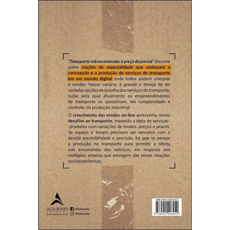 “Transporte sob encomenda: o preço da pressa” discorre sobre noções de especialidade que embasam a concepção e a produção de serviços de transporte em um mundo digital onde todos podem comprar e vender. Nesse cenário, é grande o desejo de ter variadas opções de escolha dos serviços de transporte, razão pela qual atualmente os empreendimentos de transporte se aproximam, em complexidade e controle, da produção industrial.O crescimento das vendas on-line acrescenta novos desafios ao transporte, impondo a ideia de serviços-produtos com variações de modos, preços e prazos. Se espaço e tempo precisam ser vencidos com a devida previsibilidade e precisão, há que se pensar a produção no transporte para permitir a oferta sob encomenda dos serviços, em resposta aos múltiplos anseios que emergem das novas relações socioeconômicas.