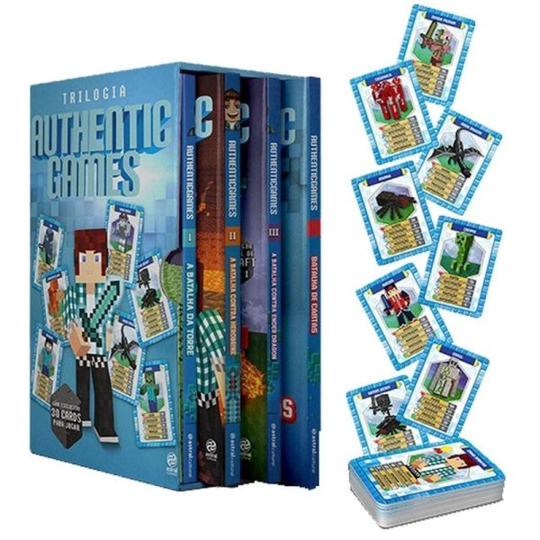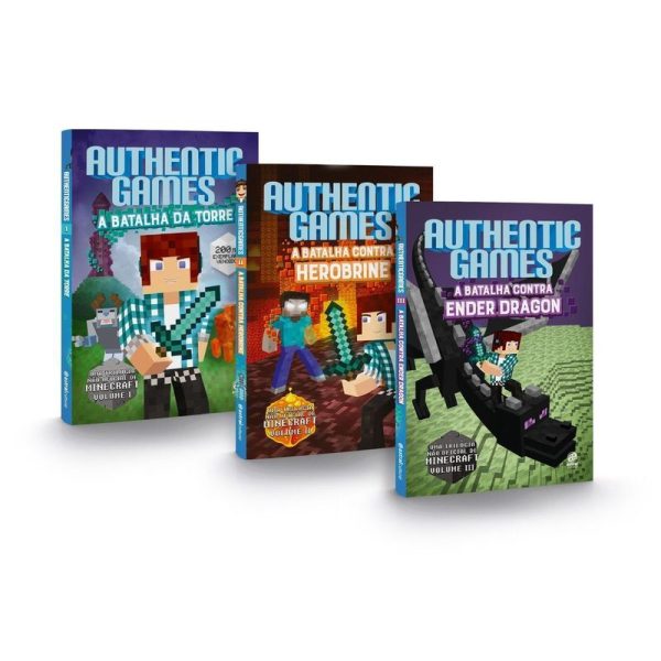 A TRILOGIA AUTHENTICGAMES está finalmente completa! AuthenticGames, Nina e você, na pele do personagem Builder, enfrentam os mais diferentes desafios para salvar o mundo da superfície das garras do Ender Dragon, do Herobrine e de toda a sua turma. E, além de participar dessa aventura de tirar o fôlego, você ainda pode brincar com o jogo exclusivo BATALHA DE CARTAS. São 30 cartas para você desafiar seus amigos e se divertir “capturando” os mobs e os personagens que fazem parte dos livros.
