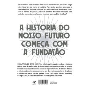 Obra-prima de Isaac Asimov, a trilogia da Fundação recebeu o histórico prêmio Hugo de Melhor série de ficção científica e fantasia de todos os tempos. Baseada no clássico Declínio e queda do Império Romano, de Edward Gibbon, a trilogia sedimentou seu autor como um dos maiores escritores do gênero e influenciou outras mentes geniais, como Carl Sagan, Steven Spielberg, George Lucas, o nobel de economia Paul Krugman, Elon Musk. A humanidade está em risco. Uma ciência revolucionária prevê uma longa e inevitável era de trevas e barbárie. Para evitar que isso aconteça, o chamado plano Seldon é colocado em prática ao longo de séculos, e percorre a história da galáxia, prevendo conflitos de nossa civilização. Mas poderá o comportamento humano obedecer a um padrão científico?