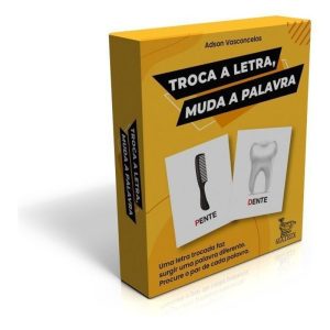 Este livro-caixinha® traz um desafio muito diferente e instigante: fazer a criança olhar a figura representada em cada carta e a palavra nela escrita. Cada palavra tem uma letra em vermelho. O desafio é procurar um par com uma palavra muito parecida, com apenas uma letra trocada, também marcada em vermelho. A criança vai perceber os sons da fala (fonemas) e verá a relação som e imagem simultaneamente, percebendo que, ao substituir uma letra de uma palavra, é possível formar outra, com grafia, pronúncia e significado diferentes da palavra inicial. São 50 cartas que formam 25 pares. Muita diversão e treinamento mental para ninguém querer trocar por outra brincadeira.