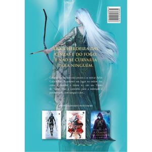 A história de Celaena Sardothien, uma assassina a serviço de um rei tirânico, é uma fantasia épica repleta de ação, intriga e cenas de luta inesquecíveis. No terceiro livro da saga, Herdeira do fogo, Celaena ressurge das cinzas ainda mais forte e letal. Com personagens complexos e reviravoltas de tirar o fôlego, o universo de Trono de vidro se tornou um classico entre os amantes de fantasia, acumulando mais de um milhão de cópias vendidas e se tornando presença frequente nas listas dos mais vendidos. Chegou a hora de abraçar sua verdadeira herança e reivindicar a coroa de Terrasen. Agora é a vez do suor e das lágrimas, do sangue e do sacrifício. A justiça mais uma vez ocupará o trono do cervo branco, o Senhor do Norte. Presa ao juramento de sangue feito a Nehemia, Celaena procura a rainha feérica Maeve para aprender os segredos da própria magia. Enquanto treina com Rowan, um príncipe que leva a jovem aos limites da exaustão física e emocional. Mas infelizmente não há tempo para ceder às suas inseguranças, a hora para dúvidas é passada, pois Celaena descobre que uma batalha de proporções épicas se avizinha. Uma que pode escravizar a terra. Em Forte da Fenda, o príncipe Dorian também tenta entender a magia, com o auxílio da curandeira Sorscha, que rapidamente se torna mais que amiga. Mas ela também guarda um segredo, que pode colocar o príncipe herdeiro em grave perigo. E ele não pode contar com o amigo Chaol, ocupado em descobrir mais sobre os rebeldes e o Lobo do Norte, Aedion, primo de Celaena. Nas distantes montanhas Canino Branco, as bruxas do clã Dentes de Ferro treinam enormes serpentes aladas para os exércitos do rei. Em meio a esse cenário, Celaena se equilibra entre os vivos e os mortos, humanos e feéricos, enquanto seu mundo caminha para a guerra. Agora, a vitória depende de Celaena encontrar coragem para enfrentar tais perigos, além de seus próprios demônios, e fazer a escolha mais difícil da sua vida. Este livro é tudo o que você deseja de um livro no meio da série. Focado nos personagens, mostra quem eles são, como chegaram aqui e para onde estão indo. Se você acha que amou os dois primeiros livros, será arrebatado de vez por Herdeira do fogo.
